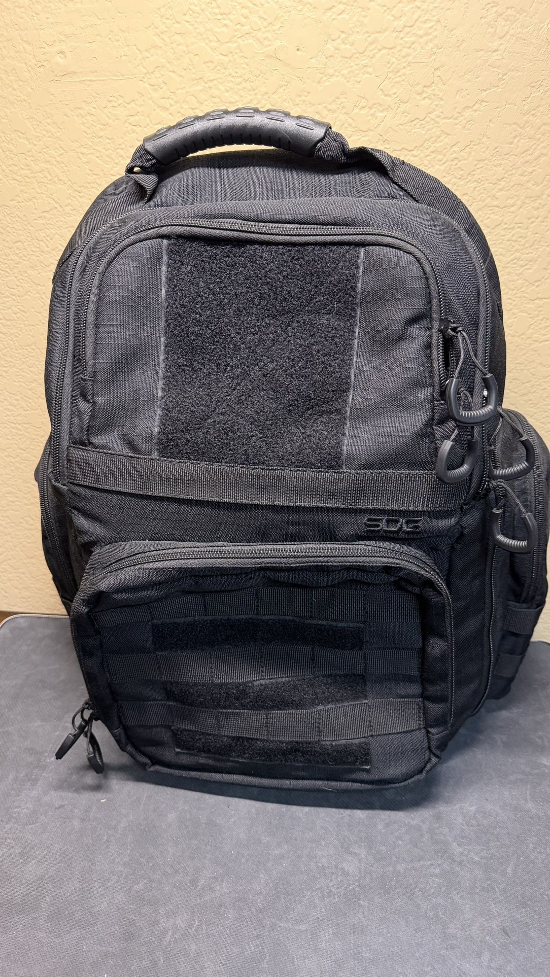 New Condition however there is no original tags and the pistol cases along with the SOG patch are missing** Molded Top Grab Handle; Top Compartment Organizer with Divider and Magazine Slots; Dimensions: 11.7” W x 8.6” L x 18.1” H