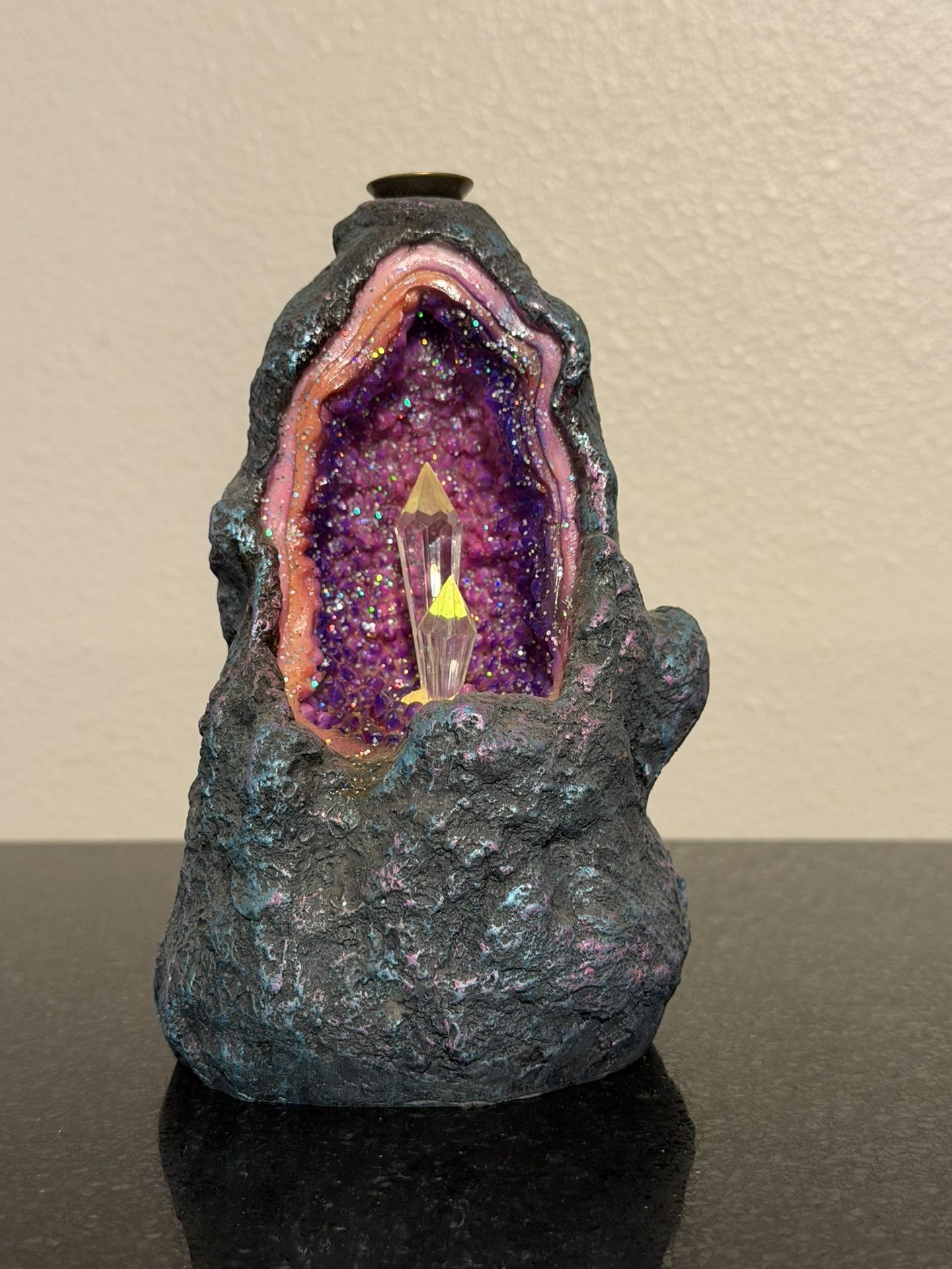 Battery powered, lights up different colors Crystal cave Holds incense at top Perfect condition!
