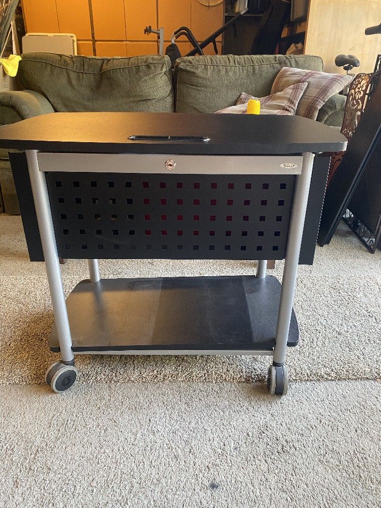 Metal filling cabinet on wheels