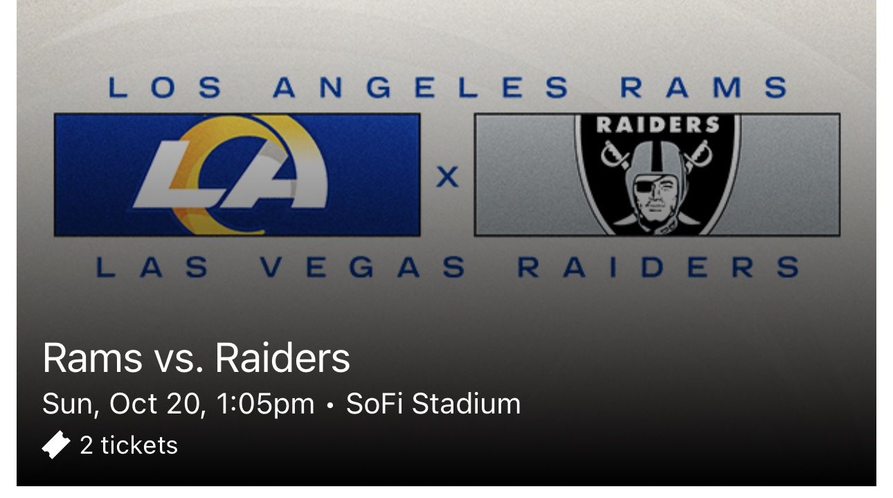 2 tickets to Rams vs Raiders for tomorrow! Sec: 522 Row: 9 $100ea Hit me up if interested (contact info removed)