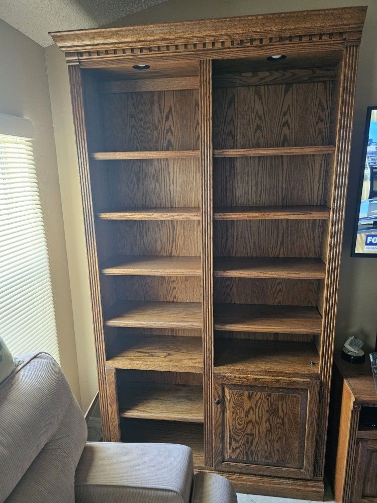 Solid wood bookshelves. There are two blemishes when previously moved. Need gone ASAP!