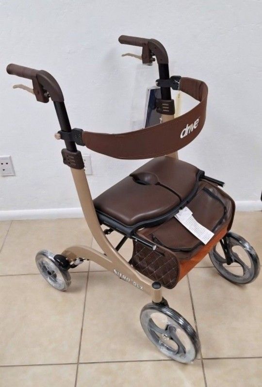 Drive Medical Nitro DLX Foldable Rollator Walker for Seniors, Adults, and Disabled - Hand Activated Brakes, Padded Seat, and Storage Bag - Champagne