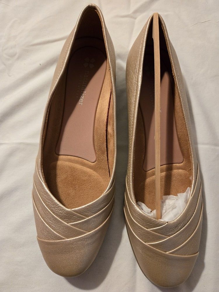 Women's dress shoes gold flats by Naturalizer good for slacks or skirts never worn size 10 price negotiable