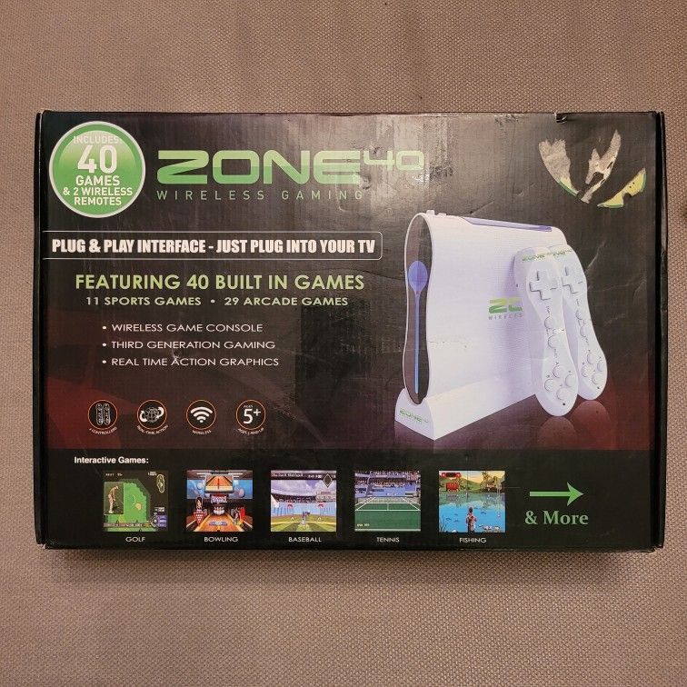 ZONE 40 Wireless Gaming System Plug & Play - w 40 Built In Games in Original Box BETTER THAN NEW. LOVE IT AGAIN. LEONE THRIFT. Make me an offer! Check out my other LeoneTHRIFT items. Thank You!