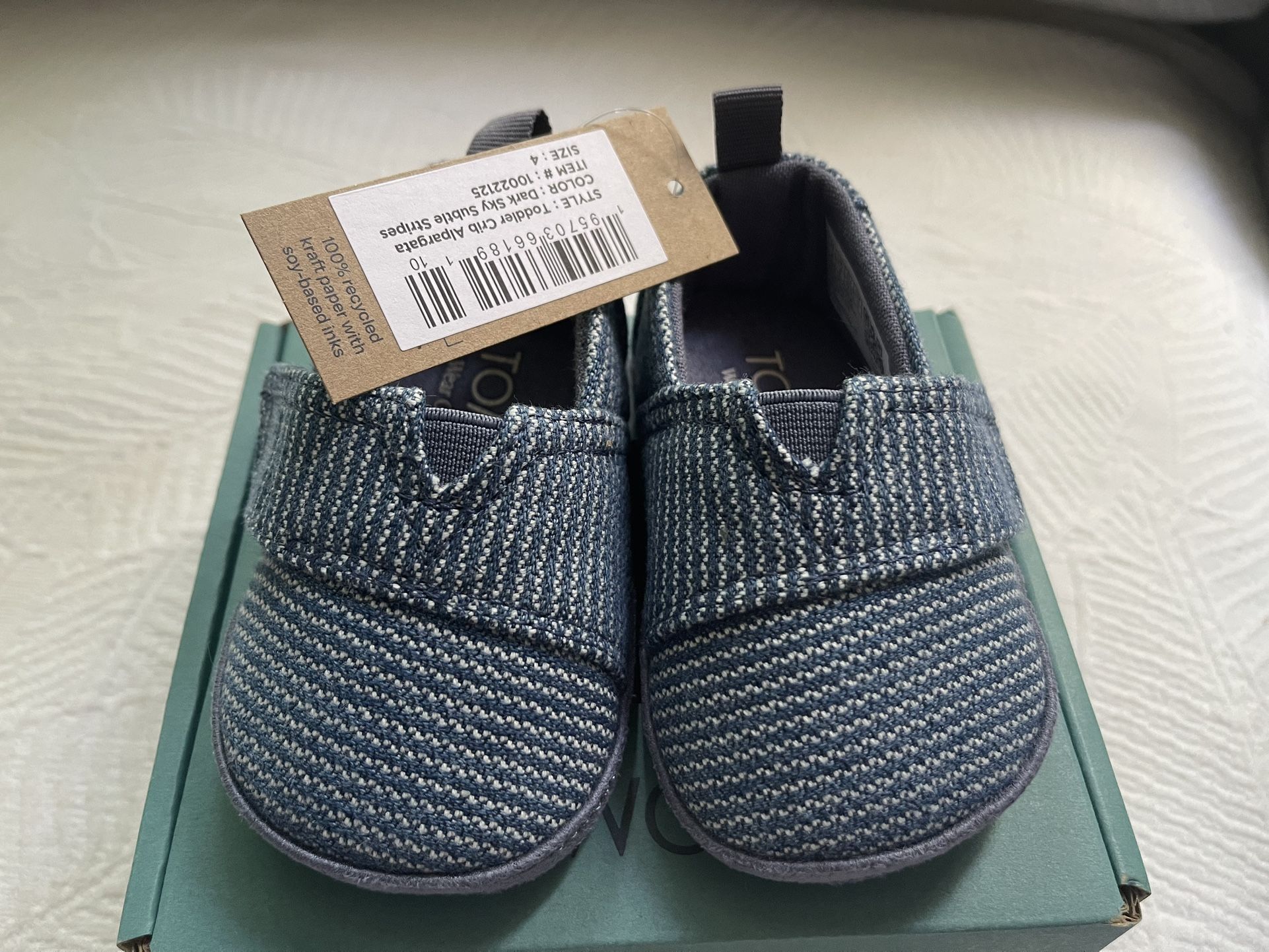 Ordered the wrong size and could not return. Blue baby Tom’s shoes, size 4.