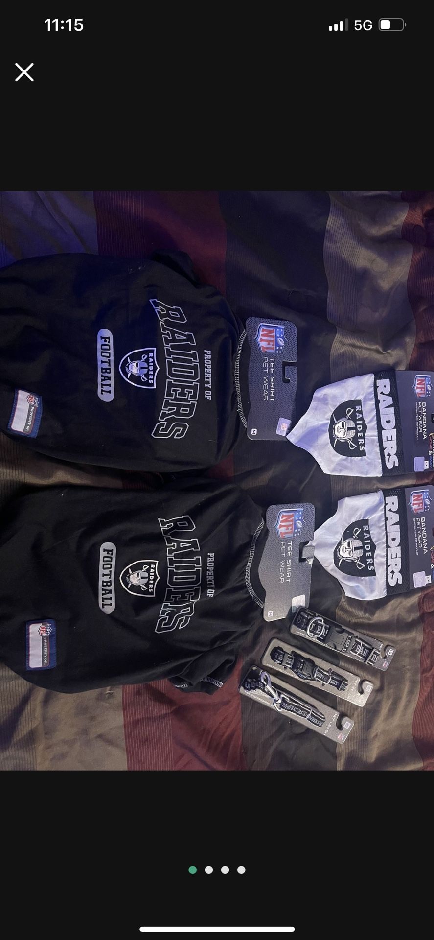 -Size medium raider shirts for your doggie $35 -Size X/XL doggie bandana $25 -medium leash/pet collar combo $40 -LG pet collar thick $30