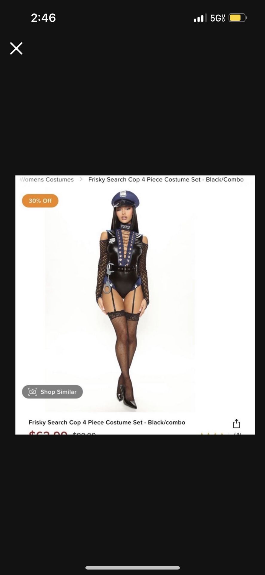 Adult cop costume from fashion nova Size S/M New, never worn Includes handcuffs, one piece, belt and hat