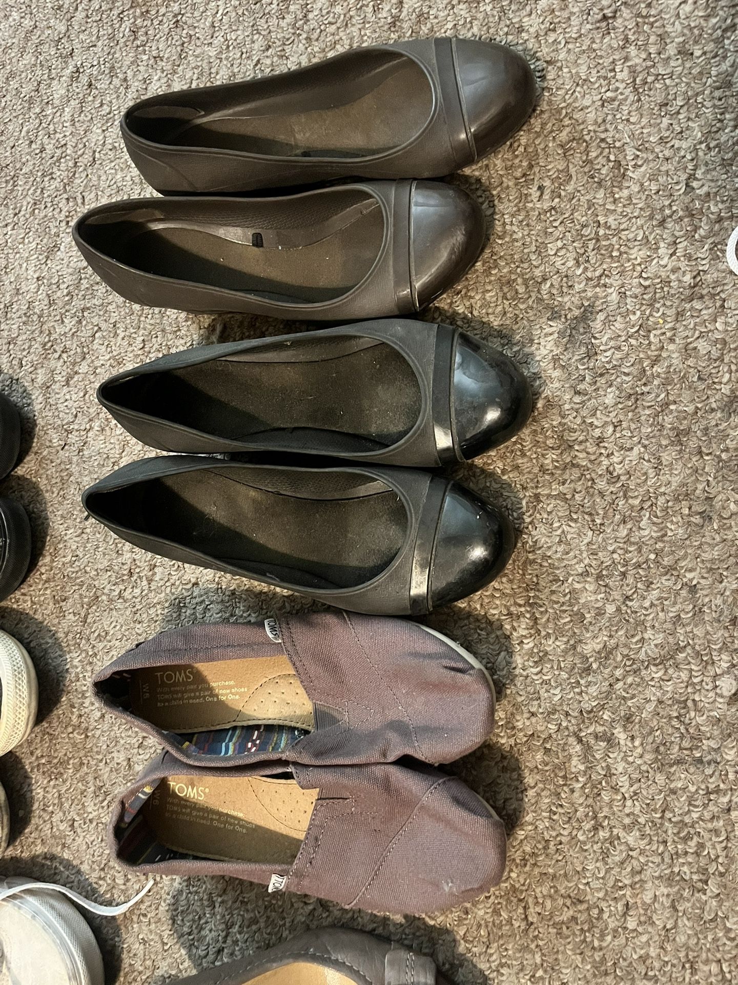 Size 6 - Gray Toms - Crocs wedge black - Crocs wedge brown $10 each Located in Mira Mesa