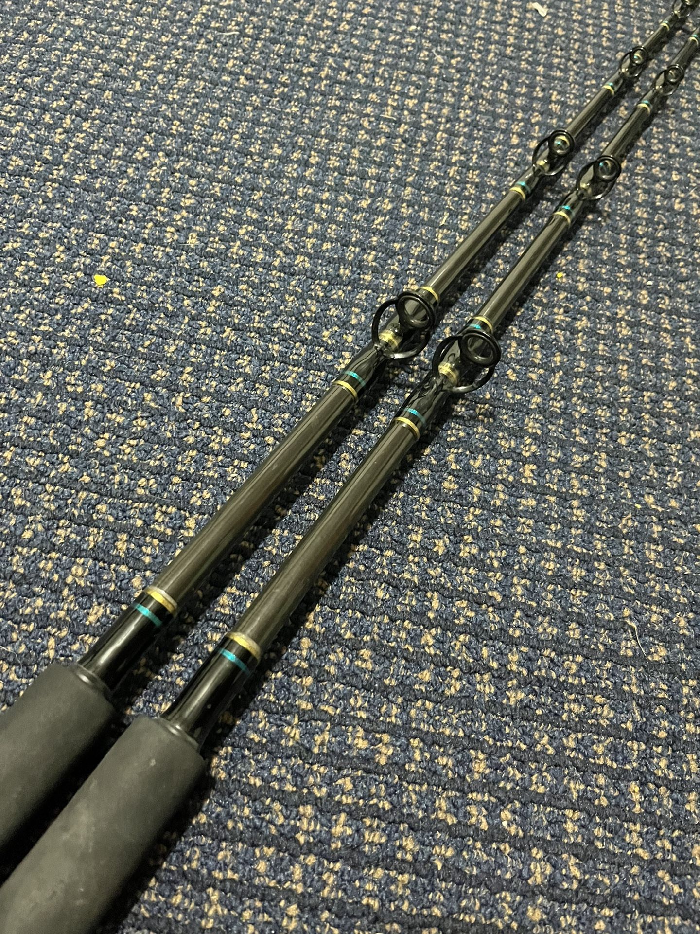 These are J&M Tackle Shop rods that are designed for a heavy jigging application, trolling, or standup tuna fishing. They are 30-60lb class 5’10” and quality built. These rods retail on their site for $225 each These two are in great condition and will be seeking $150 each If you buy both I’ll take $50 off and sell the pair for $250 Thank you!