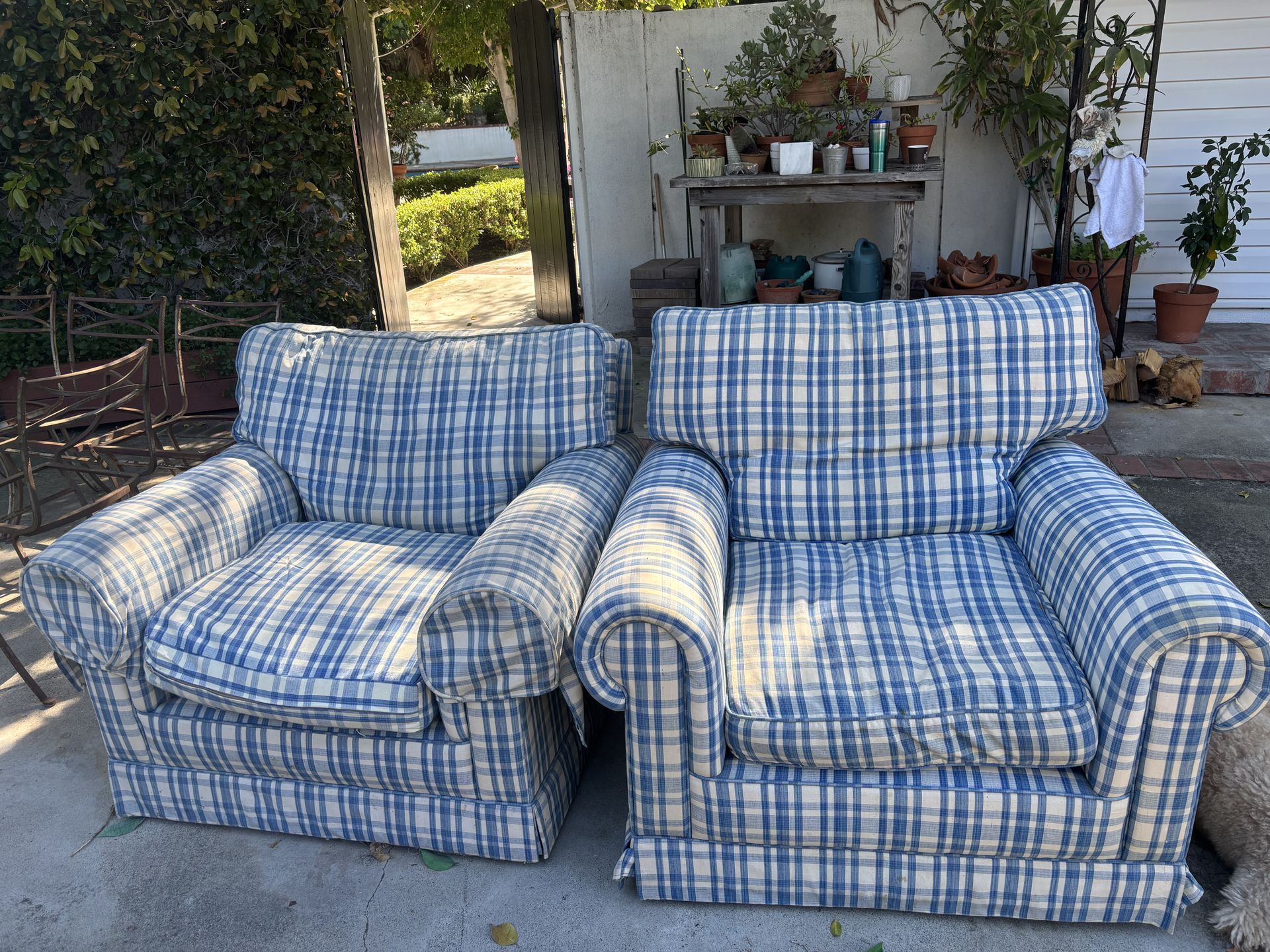 2 Down filled arm chairs. 41” wide x 38” deep. Very comfortable!