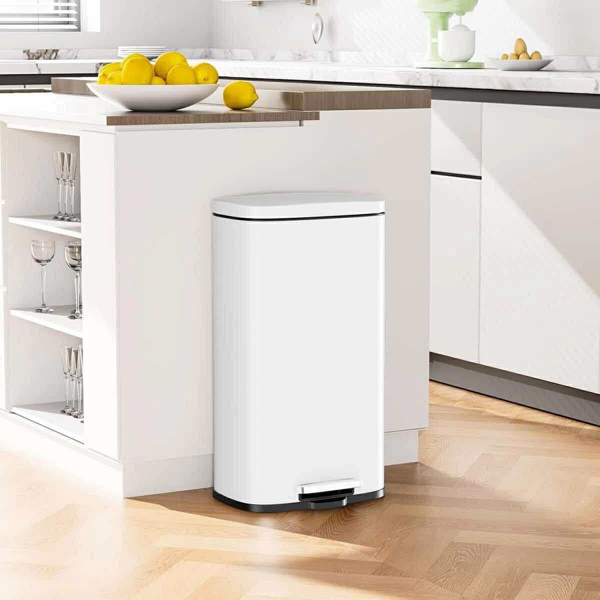 30L Step Trash Can, Stainless Steel Garbage Bin, Soft-Close Rubbish Bin with Removable Plastic Inner Bucket, Fingerprint-Proof