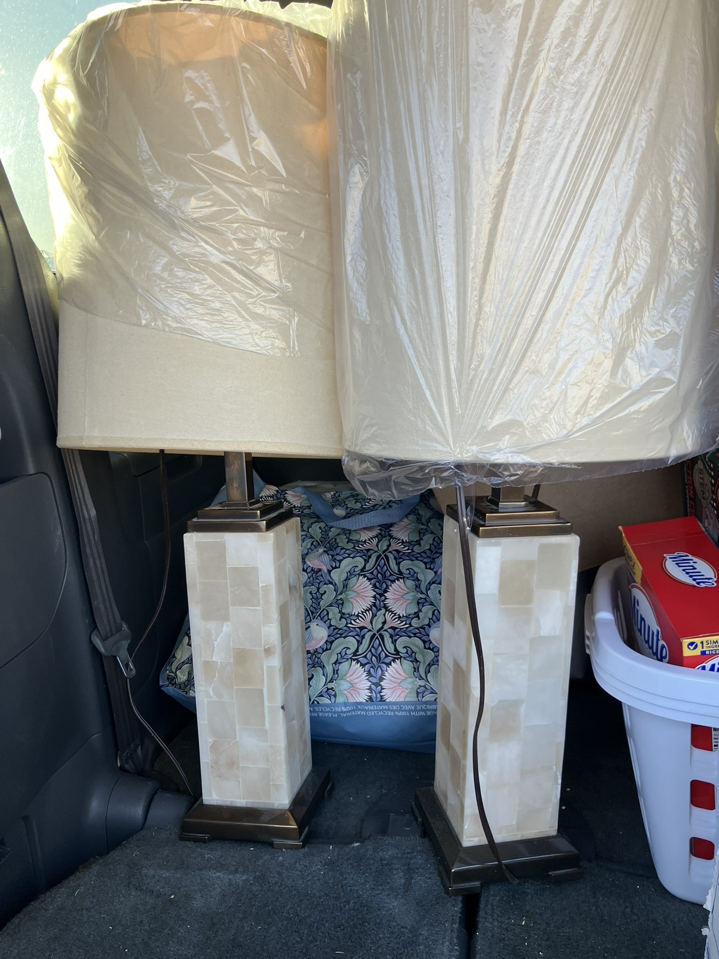 Very nice Pair Of Marble Look Lamps W Shades, tall table or dresser lighting Just off Chapman Ave and 55 or 22 freeways in Orange