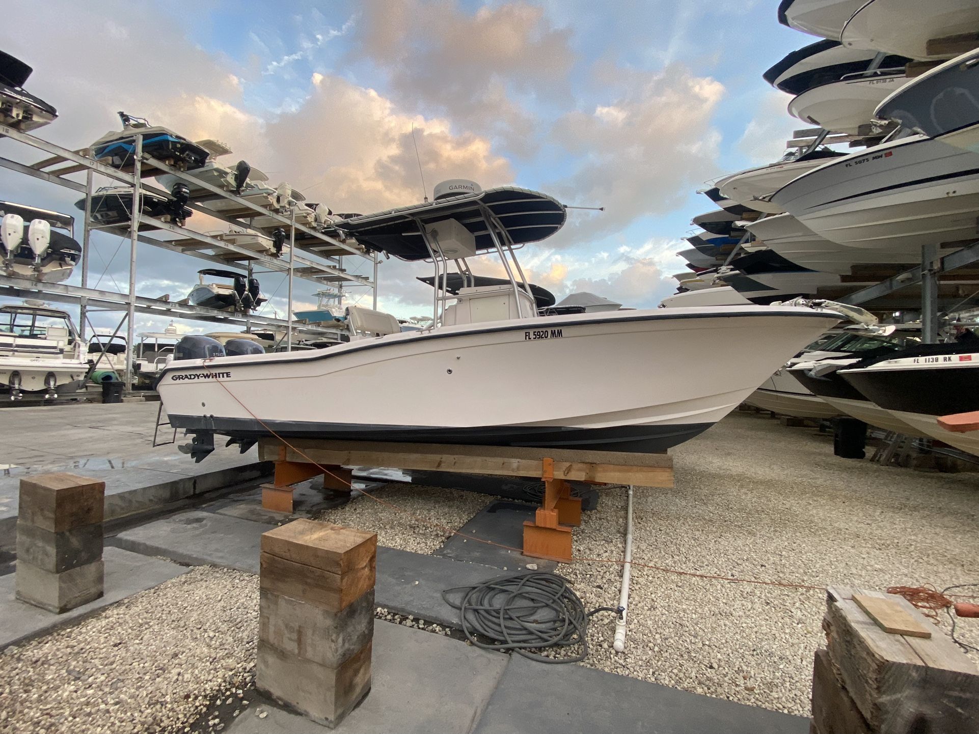 2004 Grady white 256 Brand new fuel tank 151 gallons Twin 150 Yamahas 680 hours year 2006 Touchscreen garmin/radar - needs to be replaced sun damage on screen. JL audio sound system Trailer included in price NO cushions.