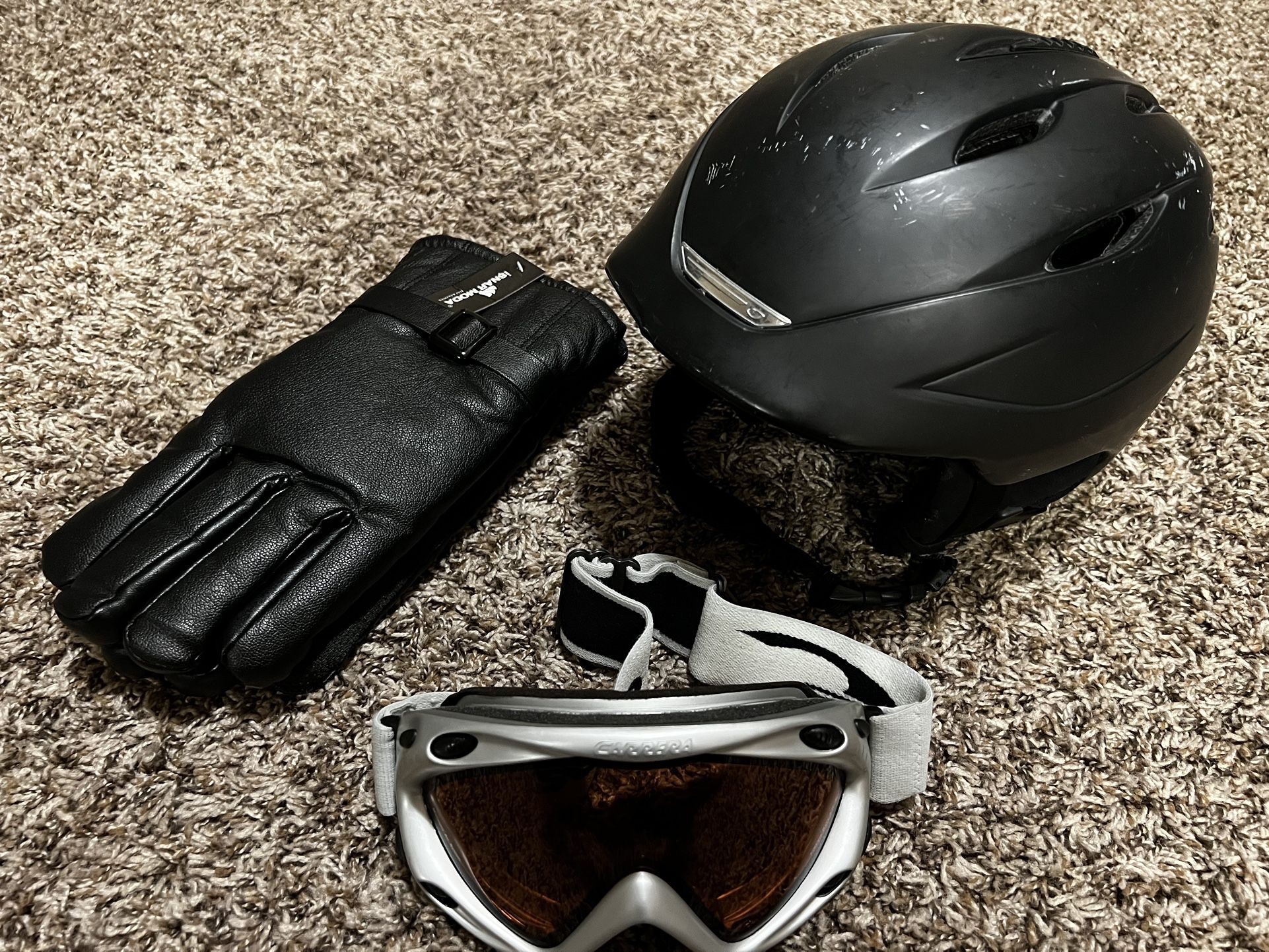 Carrera ski goggles, Giro medium helmet, Brand new gloves …