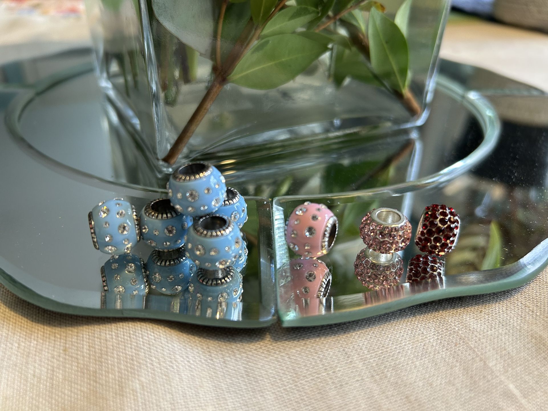 Part of award program, in my business., this is all I have left ! Beads /Charms are regular $10-$26 NOW $2-$5 each PLUS free spacer while supplies last ! All Brand NEW !! Just in time for Easter ( put inside plastic egg ) or Mother’s Day ! State Charms : WA ( coffee cup) , OH ( Johnny Appleseed ) , Hawaii ( Pineapple ) Letters : B, K Bracelet reg $32 , NOW $10 Porch pick up Cash or Venmo