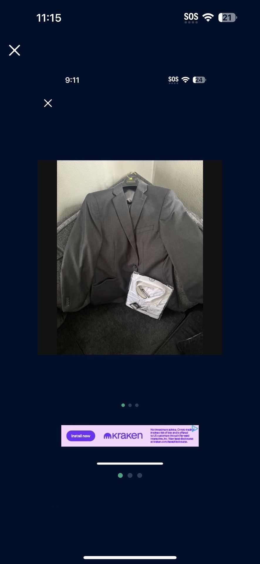 Suit. Perfect for wedding, quinciñera, funeral, work, date night, etc.. Includes coat, vest, pants, & brand new white XL dress shirt! $150 OBO Coat size 44 R, tailored Pants 38, tailored Vest size 36, adjustable