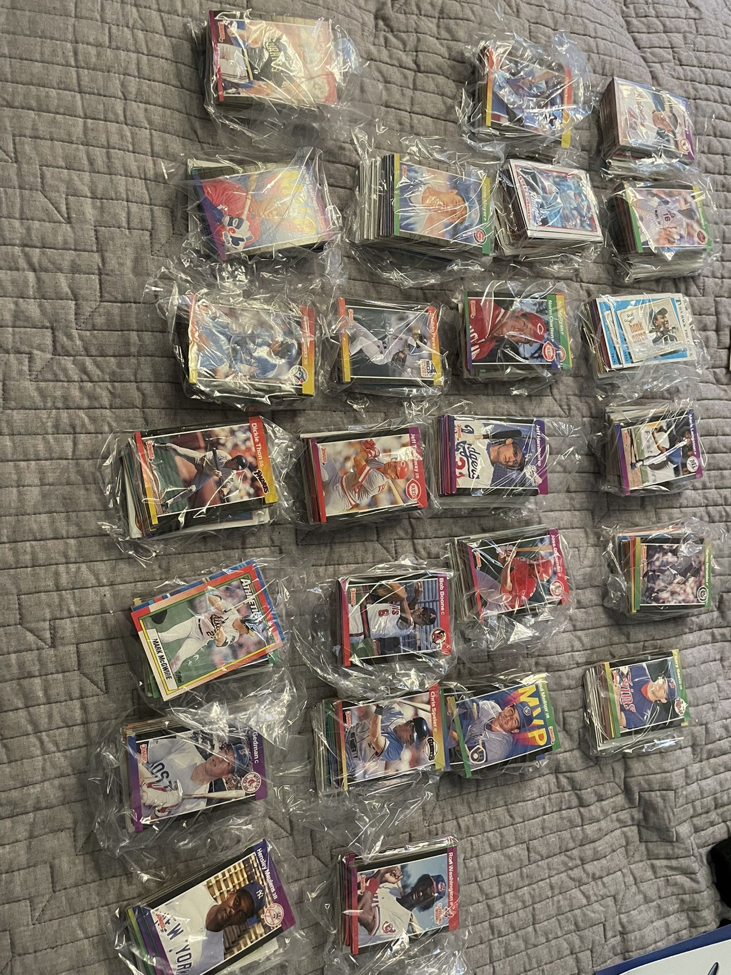 Over 1,300 baseball cards from 1979 till 1989. Names included hank Aaron, Paul monitor, ken Griffey sr, Sammy soda, and many more. Very great deal for someone interested in older cards