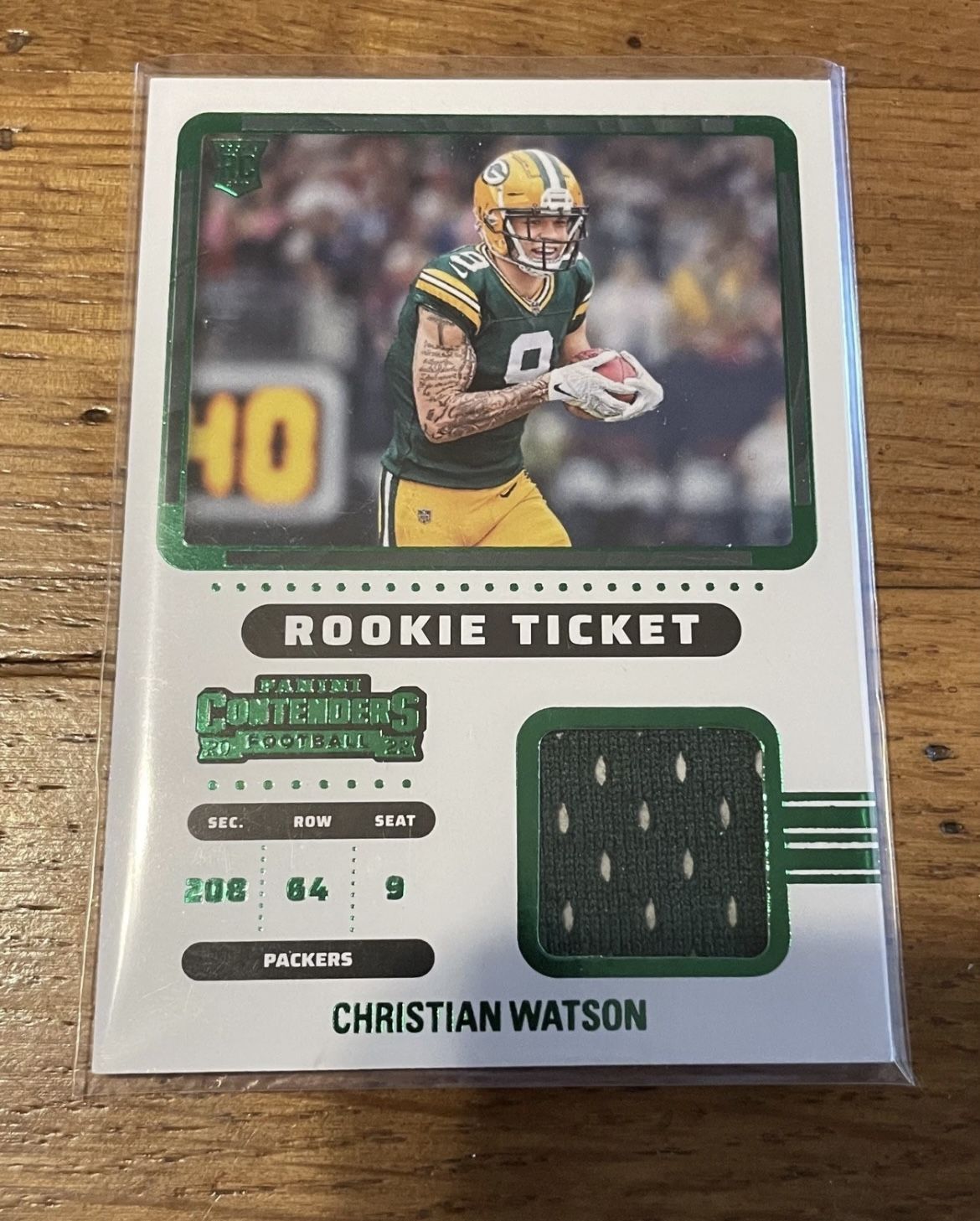 2022 Panini Contenders Emerald Rookie Ticket Swatches Christian Watson #RTS-CWA