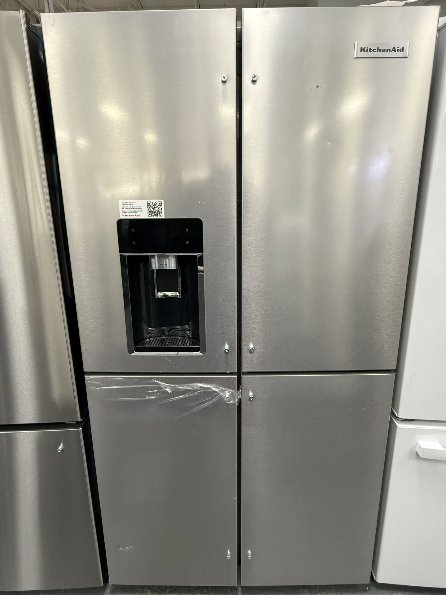KitchenAid 4-Door Counter-Depth Refrigerator Model KRQC736RPS – BRAND NEW (Out of Box) Price: $1,997.77 Perfect for a modern kitchen — this KitchenAid KRQC736RPS is brand new, out of the box (Scratch & Dent) never used, fully tested, and ready to install. Key Features -19.4 cu. ft. total capacity — compact counter-depth design fits closer to cabinetry while offering ample fresh + frozen storage  -Flexible Temperature Zone — convert the right-hand freezer compartment into a fridge (or wine cellar) at the touch of a button; up to 15 temperature settings and 4 specialty presets (from deep freeze to wine-cellar temps)  -Large-Capacity Ice Production — over 3 lbs of filtered ice made per day, with exterior ice and water dispenser (filtered water or ice: crushed or cubed)  -Removable Beverage Caddy — store/serve up to 6 bottles (wine or drinks) at optimal temperature; can go from fridge to counter with ease  -PrintShield® Finish — fingerprint-resistant stainless steel that stays clean with just water and a soft cloth -Multi-Zone Cooling System — separate zones for fresh food, freezer, and flexible compartment, allowing customizable storage and precise temperature control.  -Signature Platinum Interior + LED Lighting — premium interior with wood-look trim, smoked crisper bins, metallic accents, and bright LED lights for great visibility.  -Adjustable Shelving & Storage Flexibility — adjustable glass shelves, slide-away shelf option for tall items, humidity-controlled crispers, and versatile door bins.  Delivery & Installation -Delivery (within 30 miles): $79.99 -Installation: Included with purchase of a new water line -Haul Away (your old fridge): $25 Any delivery over 30 miles or installation not on ground level may incur additional charges. Warranty Options (Renewable!) Covers parts, service, labor fees, replacement, power surge, and food loss - 2-Year Warranty: $150 - 4-Year Warranty: $240