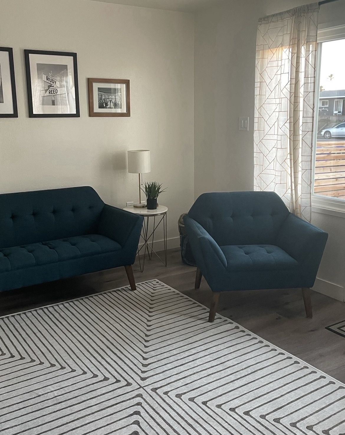 💙Stylish Loveseat & Chair Set – Modern, Compact & Comfy! $150 for Both!💙 Perfect for a small apartment or cozy space! This modern button-tufted loveseat and lounge chair set adds a pop of color and style without taking up too much room. - Mercury Row Loveseat (Wayfair, originally $659.99) Dimensions: 59”W x 30.75”D x 31.5”H - Matching Accent Chair (Wayfair, originally $325.95) Dimensions: 38”W x 30.75”D x 31.5”H Both pieces are in good condition, normal use in a smoke-free home. Sturdy, comfortable, and super chic. 🎯 Only $150 for the set! Pickup only. Message if interested – these won’t last!