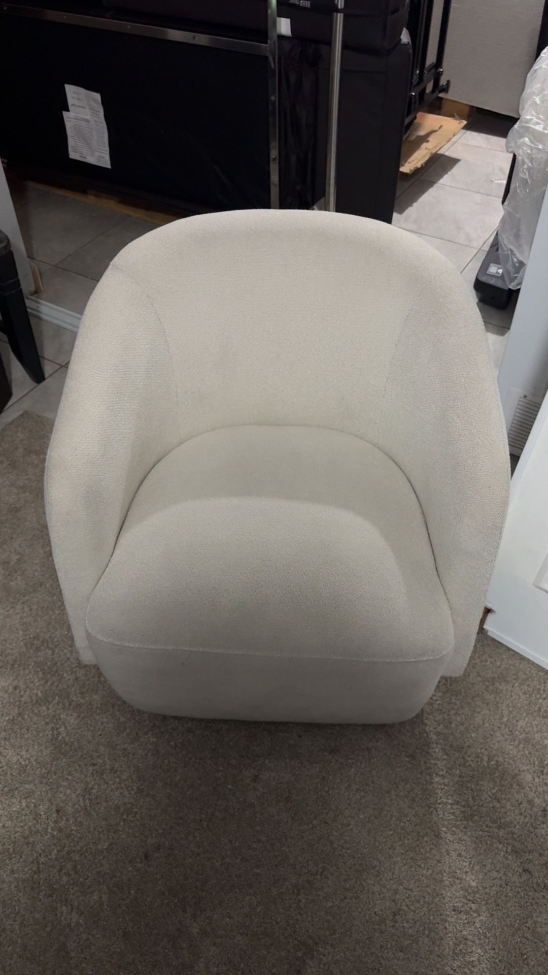 Comfortable and stylish swivel chair, great for living rooms, reading corners, or bedrooms. The chair is in great condition and has never been used. There are light stains from delivery and transport, as shown in the photos. These can be cleaned easily. 360-degree swivel base. Selling for 100 dollars, much cheaper than retail price. Available for immediate pickup. Send a message if you are interested.
