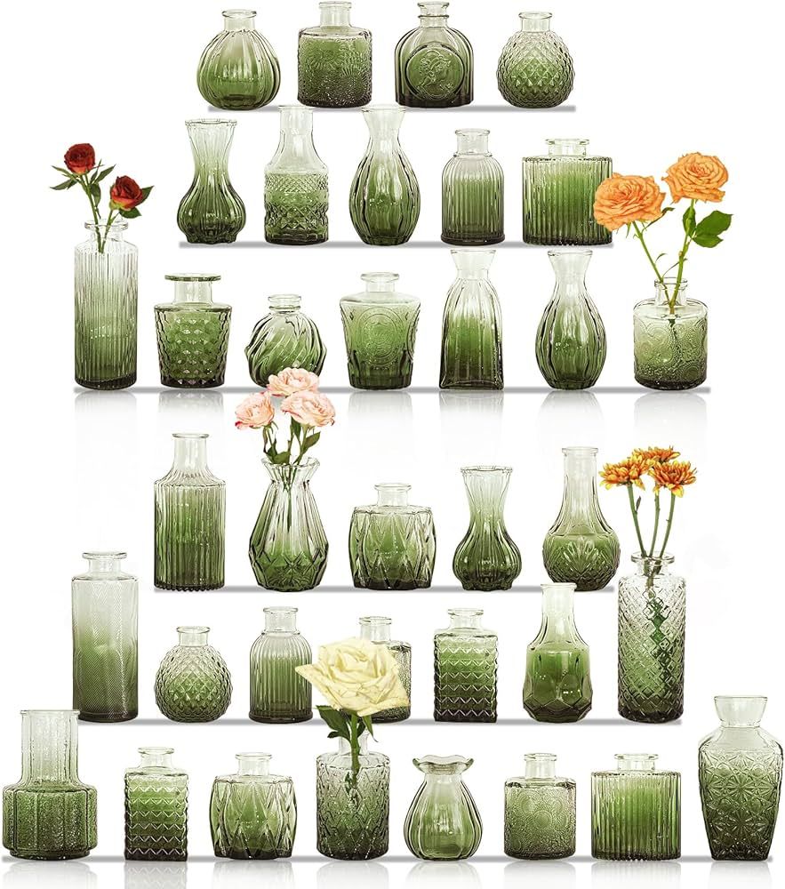 BRAND NEW 36Pcs Bud Vases Set Small Vintage Glass Bottles Bud Vases in Bulk Multiple Shape Cute Glass Vases for Rustic Wedding Centerpieces Table Decorations and Home Decor(Green) Check out my page for more brand new high quality products! G5