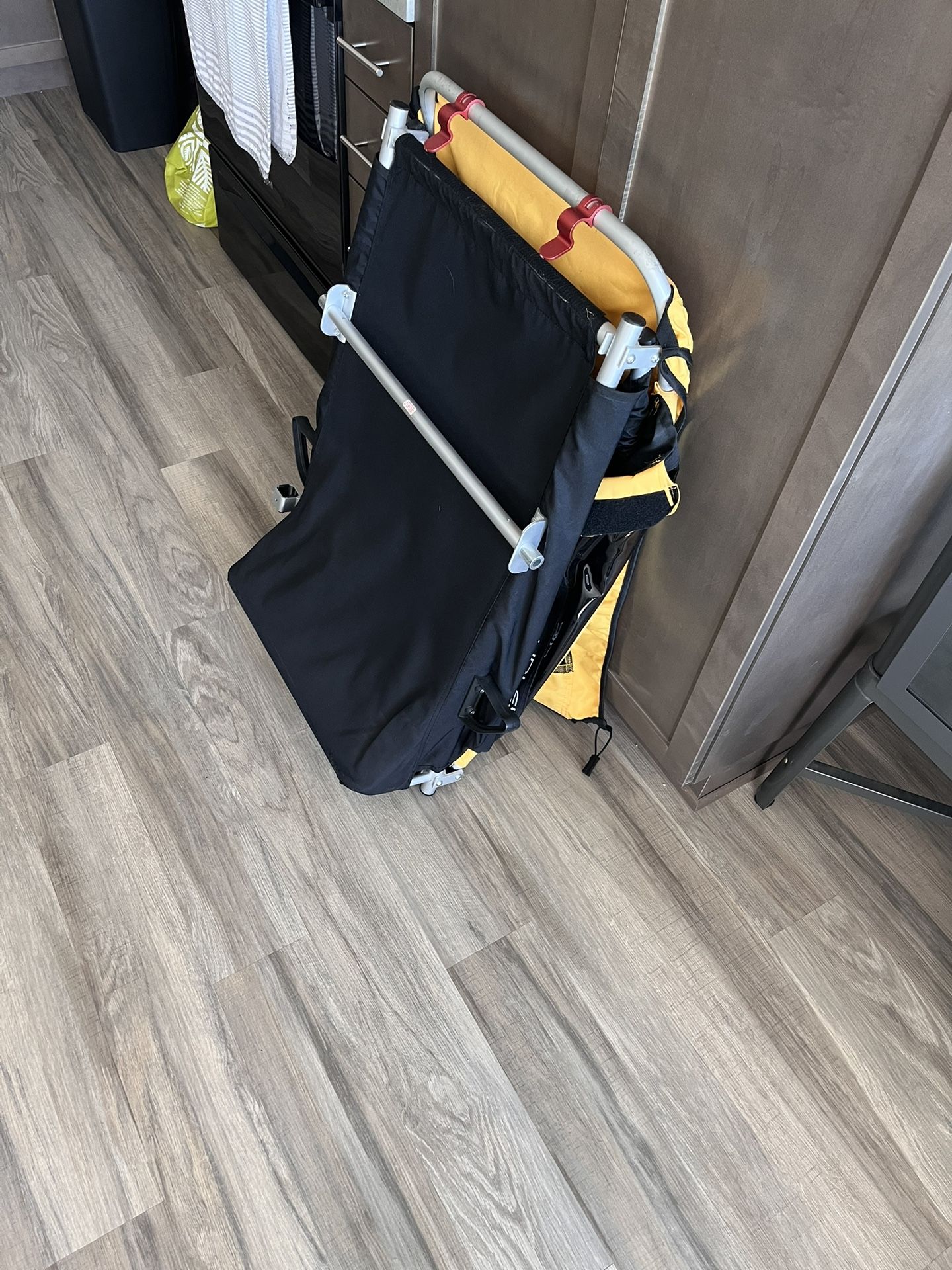 Fits 2 children 5-point harness Internal roll cage Spacious storage Lightweight double-bike trailer Bike-only design is made to be easy to use Capable of holding 2 children Adjustable, one-click 5-point harness system keeps your children safe Hammock seats make riding comfortable UV-protected windows E-bike friendly for versatile hauling Spacious storage area can fits gear, toys, and refreshments Push-button wheels Full internal roll cage offers additional safety Total Weight Capacity: 100 lbs.