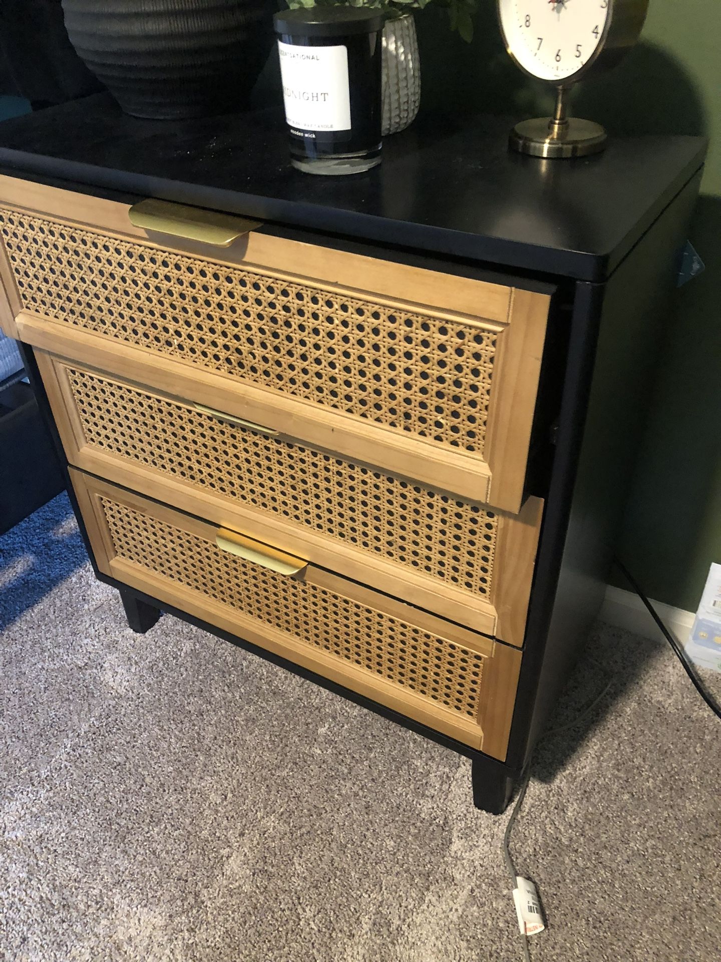 Brand New Fully Assembled!! ***OBO***OBO*** Retails $480+ PAIR Featuring three spacious drawers, accented with natural rattan webbing for artistic complement that captivates, designers love using this accented chest in pairs to frame a bed.