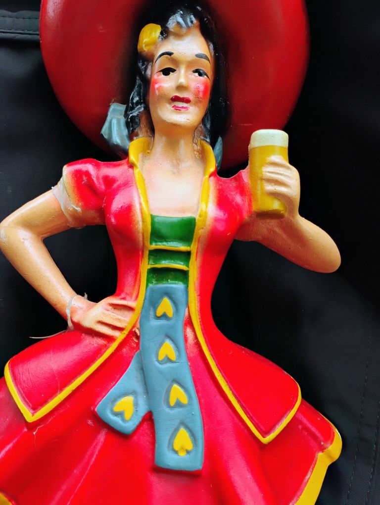 1939 Miller High Life Beer Girl Wisconsin Milwaukee . Beautiful chalk statue of the Miller girl with a larger red hat and ruffle shirt In good condition 15"