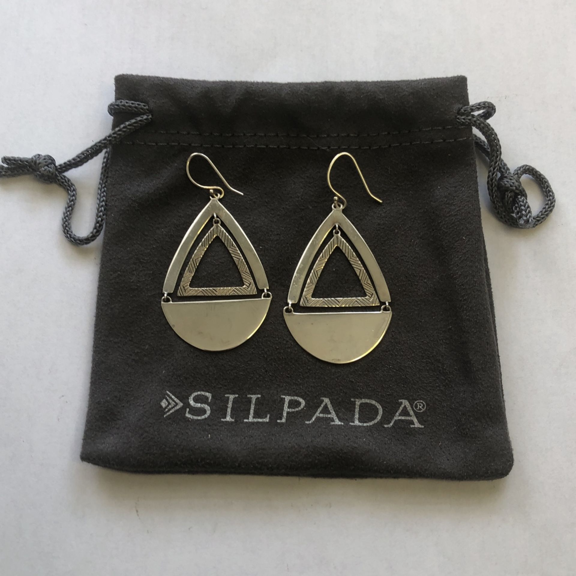 Silpada Sterling Silver .925 Half Moon Etched Triangle Dangle Earings