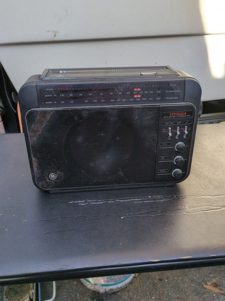 Vintage GE super radio AM FM portable radio. Shows some wear and tear from usage and storage. Tested Everything works. Make offer. No reasonable offer refused