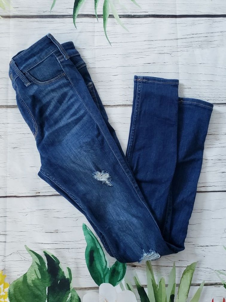 Preloved, in great condition, size 1R, W 25, L 28, Hollister high rise distressed jean legging - Hollister advanced stretch. Faux front pockets and actual back pockets. ***No pickup or delivery. Shipping only. ***
