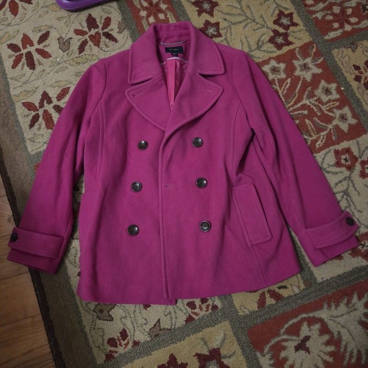 Lands End Size 16 Ladies Pea Coat Jacket Warm and very good condition Color is the color in the 3 similar colored photos. Not sure why the close up looks red. Wool pea coat barely worn