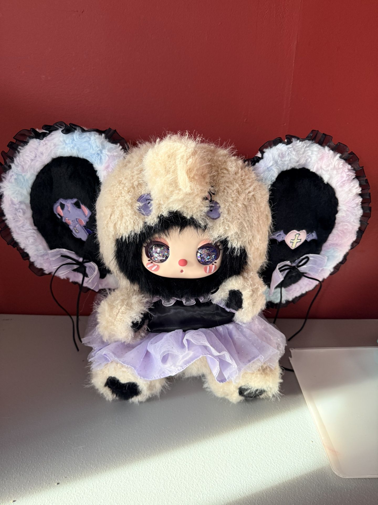 Liila's Masquerade Party With My Girl 600% Secret elephant highly chased. The Liila 600% Masquerade Party with My Girl, SECRET “Devilish Ellie” Elephant is a unique and eye-catching stuffed plush. This elephant features purple liquid glitter eyes, adding a stunning touch to the piece. She is the perfect and gorgeous addition to any Liila collection. She is brand new and only opened to check the design and take photos.