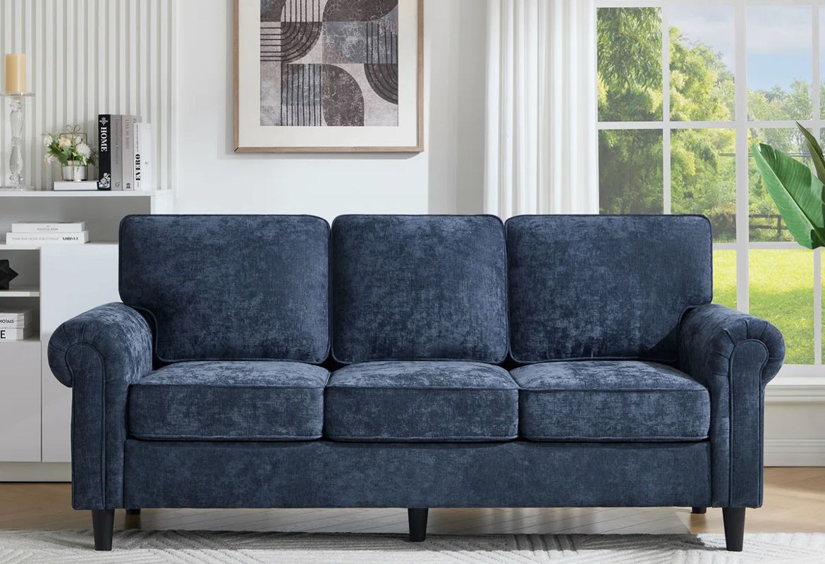 BRAND NEW: 82.7" Chenille Modern Sofa Rolled Arms Upholstered Couch by House of Hampton - Blue