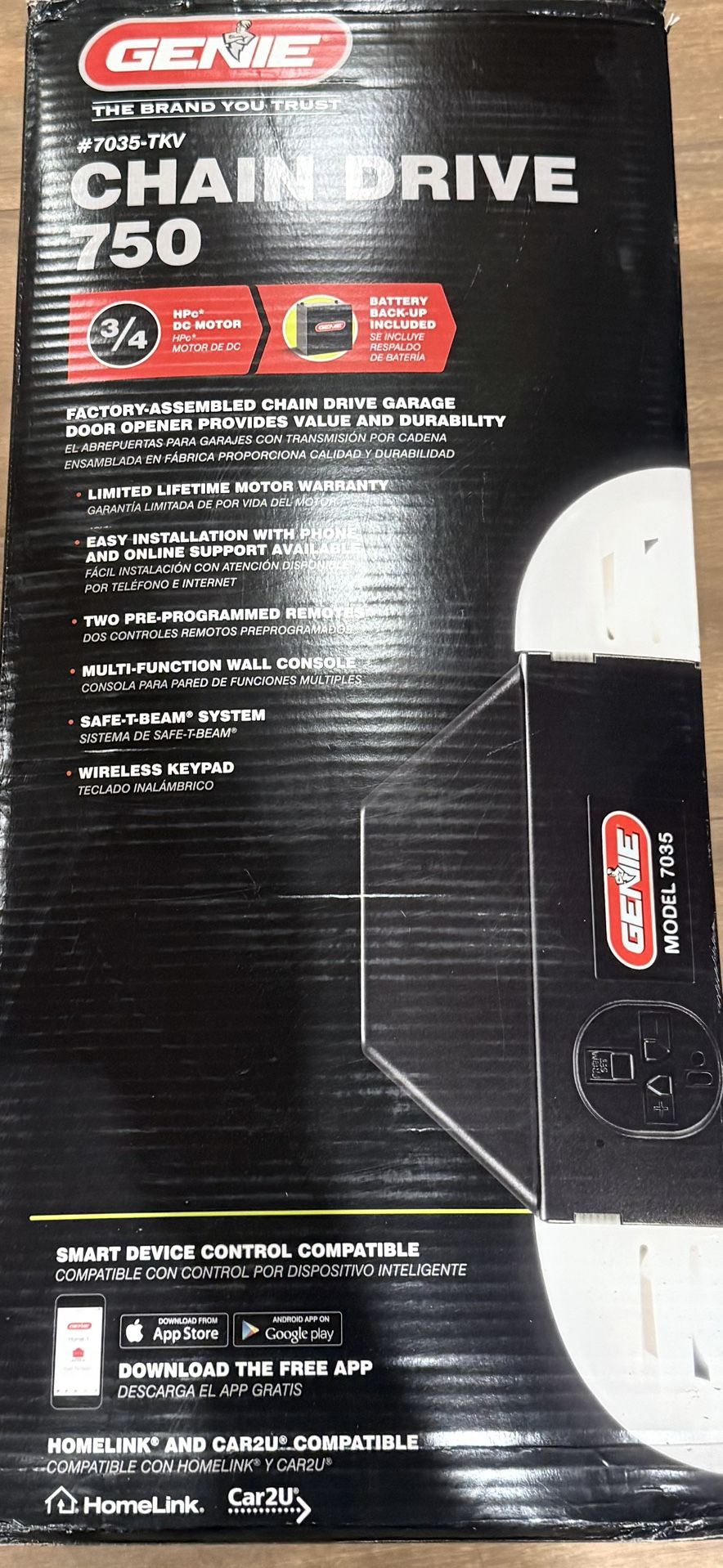 Genie Chain Drive 750 3/4 HP Garage Door Opener Battery Backup HomeLink Remotes