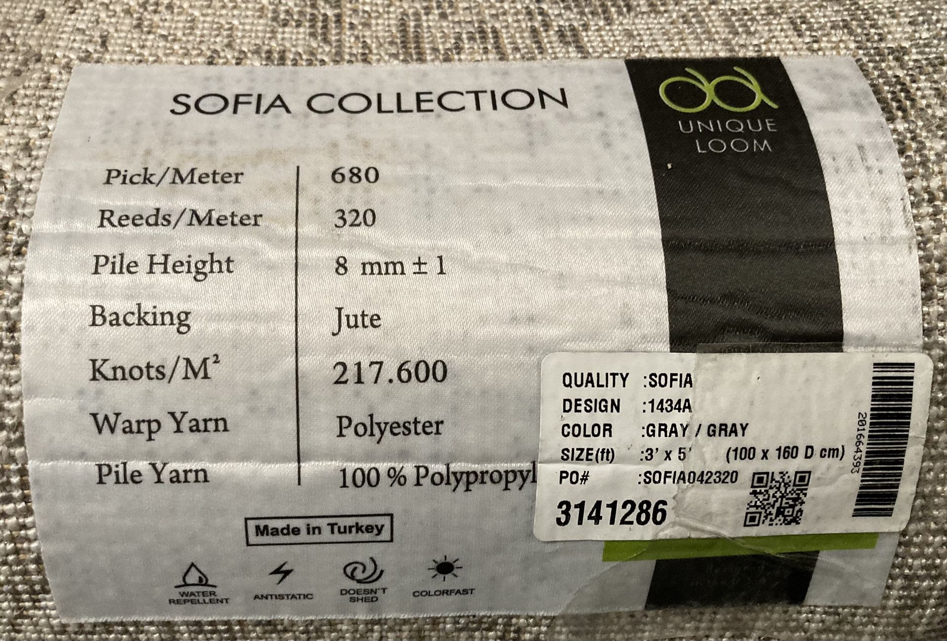 Unique Loom Sofia Collection Design 1434A Gray/Gray 3x5’