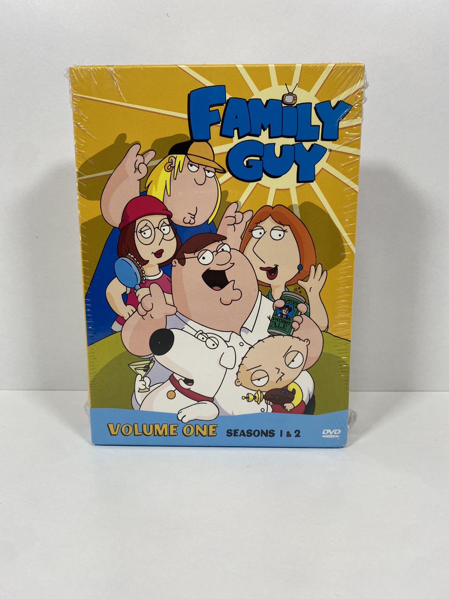 Family Guy Volume 1 DVD Set - Seasons 1 and 2 This four-disc set contains all 28 episodes from the first two seasons of Fox's irreverent comedy series. This special DVD set includes audio commentary, a behind-the-scenes featurette, deleted scenes and more. Brand new. Will meet in a public location. Pickup only. Cash only.