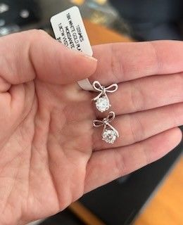 White gold bow tye necklace and earrings each piece contains 1ct Moissanite diamond set retails at 1050.00 asking 500 reasonable offers will be considered