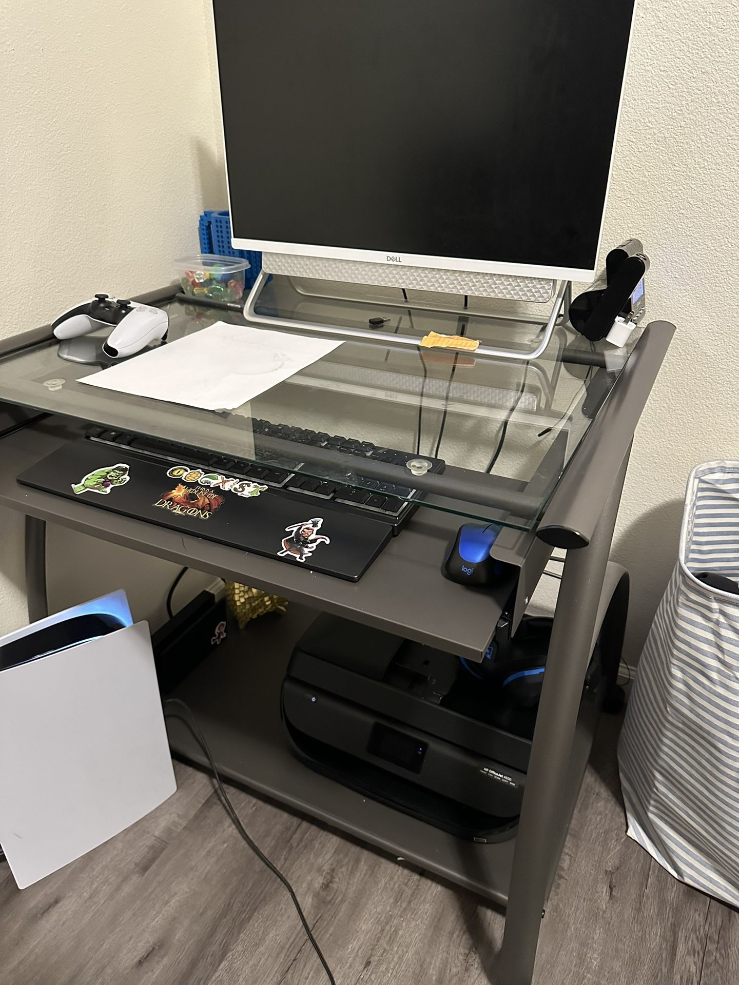 Glass top desk, great condition. Only selling because I need to downsize!