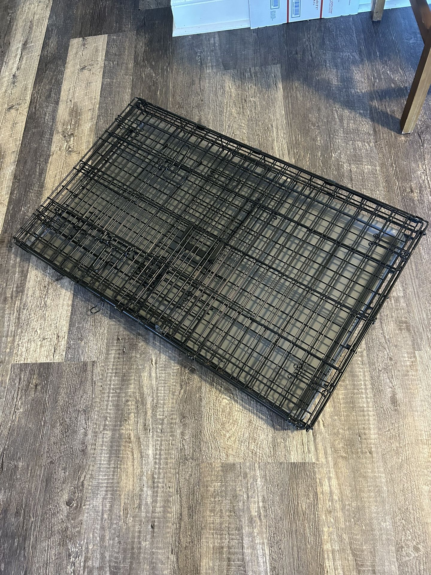 Large dog crate. Collapsible for easy transport. In excellent condition. Has side and front door openings. 35 1/2 in W 25 in H 22 D. Pick up in Mundelein