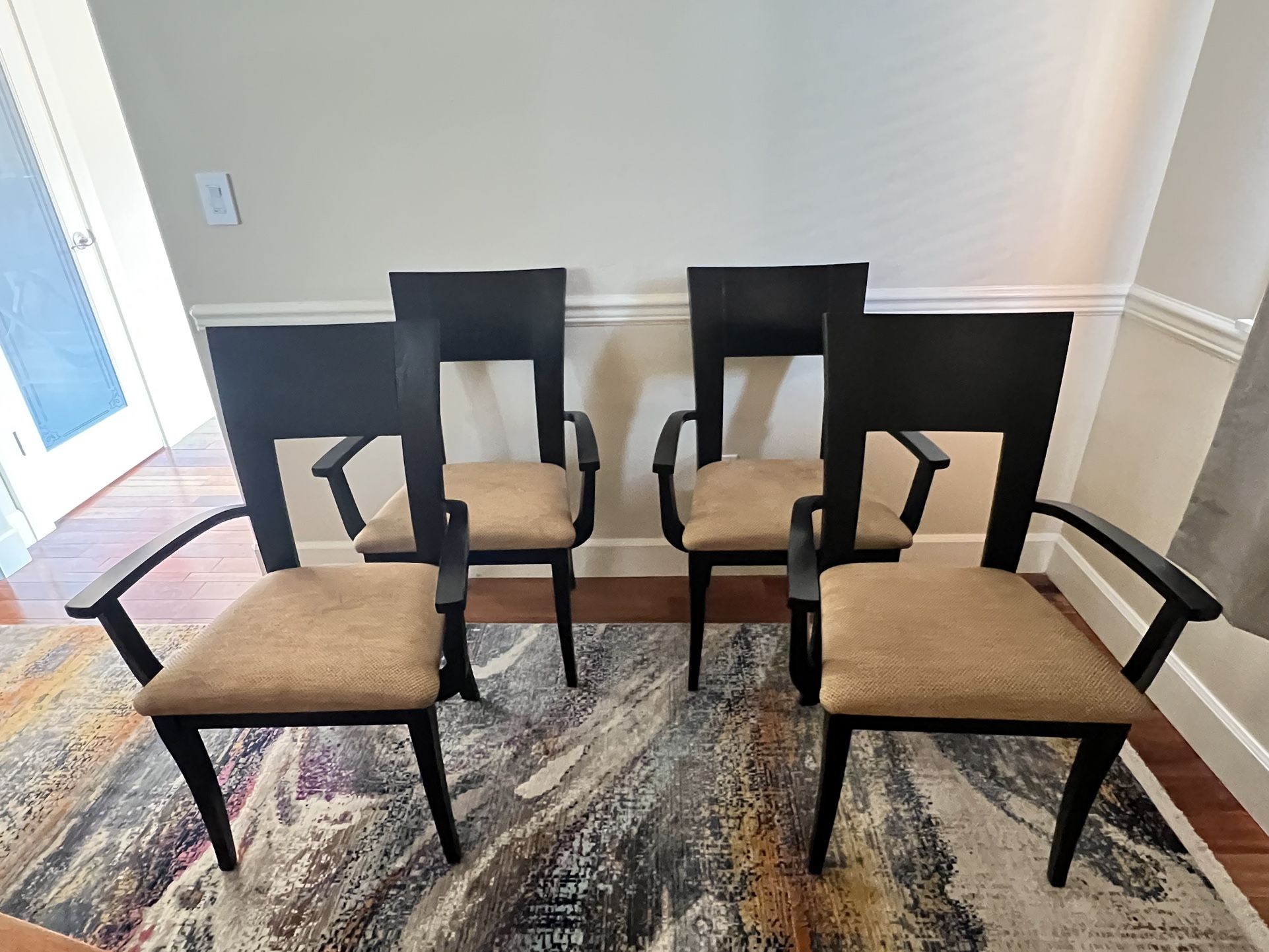 Luxury craftsmanship with timeless style. Hand woven seats over solid wood. Originally $600 each at Schoenfeld Bellevue. No smoking, no pets, kept clean with a couple of small spots that will easily steam out.