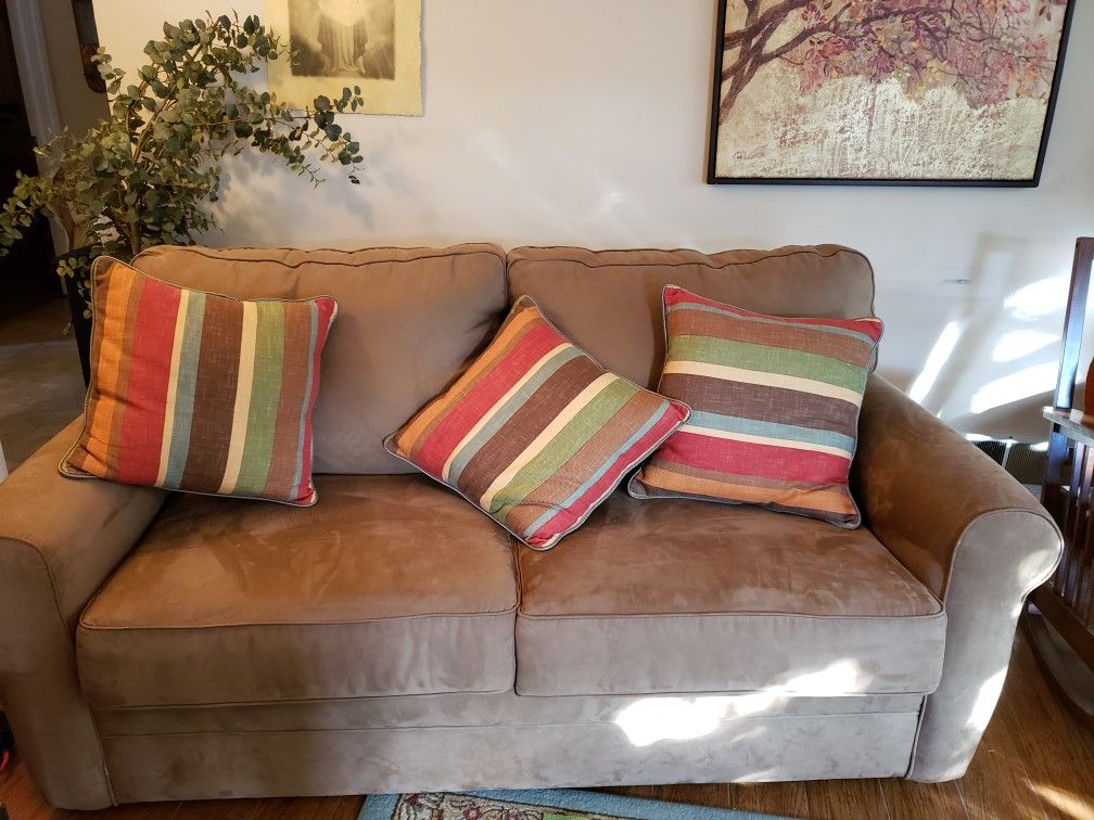 I never used sleeper part of a son selling it fast. No delivery. Great shape. Designer model number is manwhro. 74.5 inches wide by 36 inches deep.
