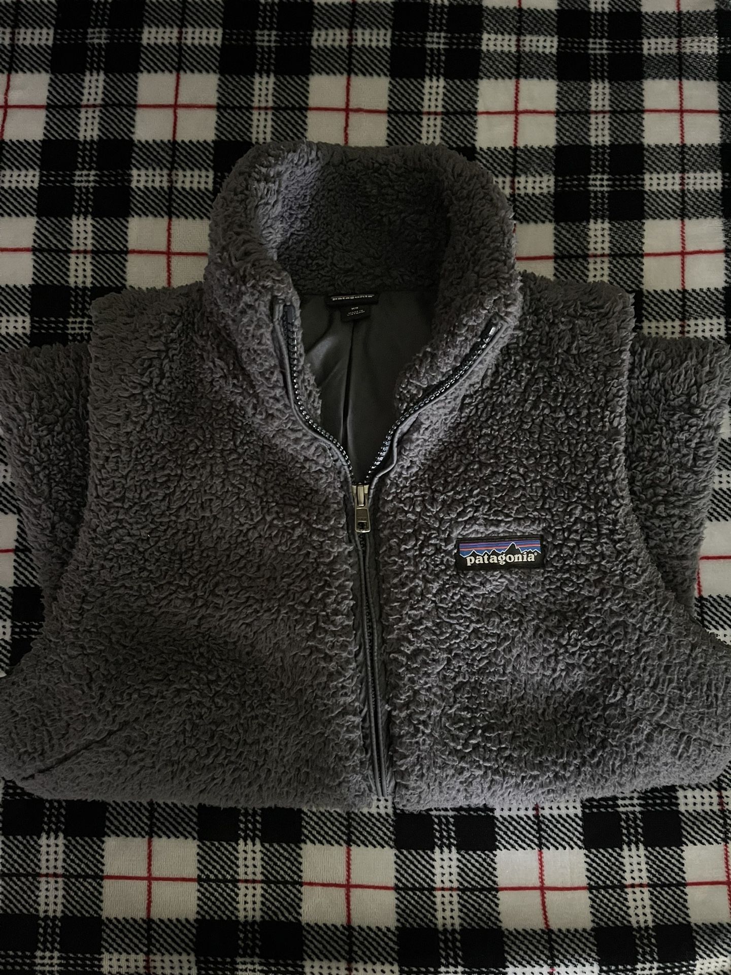 Size xs Patagonia Sherpa dark grey vest tags and Sherpa are new condition Fluffy Sherpa not like the worn flat ones u see