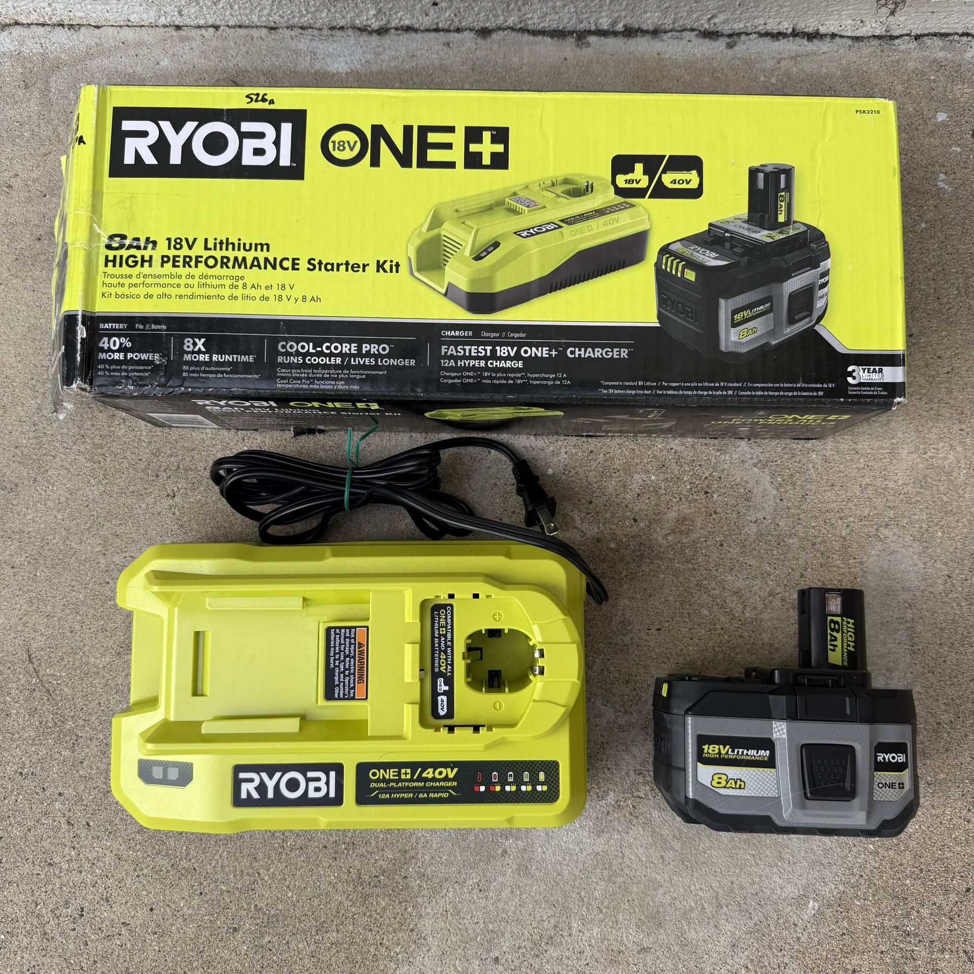 RYOBI ONE+ HIGH PERFORMANCE Starter Kit with 18V 8 Ah Lithium-Ion Battery and 18V/40V Dual Platform Charger Charges ryobi 18v and 40v batteries *Take a look at my page for more deals on tools!*