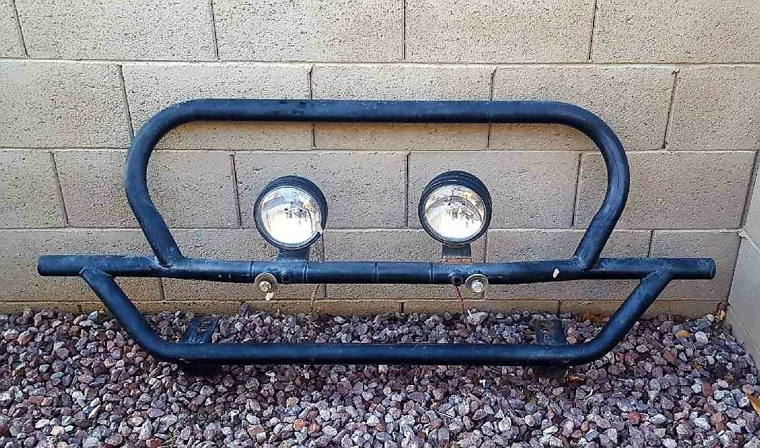 Front tube bumper by Toys by Troy. Came off of a 97 Jeep Wrangler TJ and includes the 2 off road lights. Good shape. Add a rattle can of black and it will look even better. $100.00 OBO.