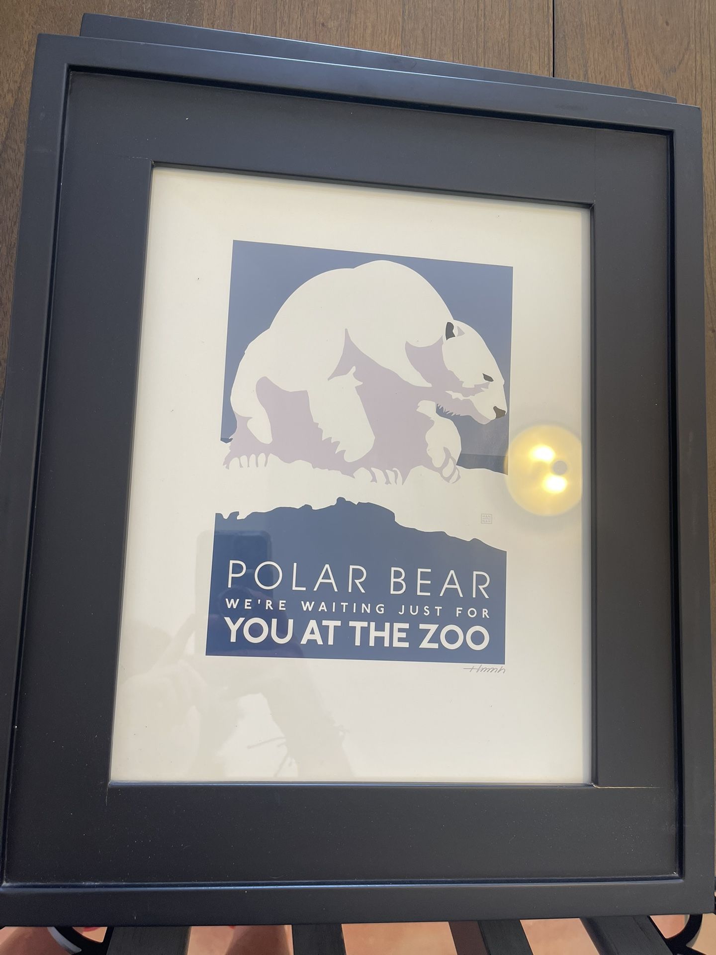 12 x 16 framed zoo animal art by Linnea. Solid wood, black gallery like frames.