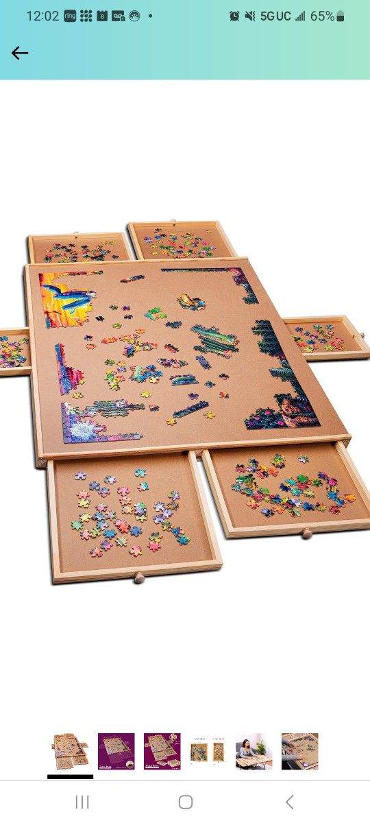 Top Highlights Brand PLAYVIBE Puzzle type Jigsaw Manufacturer Minimum Age (MONTHS) 72.00 Number of Pieces 1500 Product Dimensions 35"L x 27"W Material Wood Educational Objective Creative Thinking Age Range (Description) Kid,teen,Adult Skill Level All Shape Rectangular Special Feature Portable Style 1500 Piece Not Rotating LEADING PUZZLE TABLE SET : The ultimate design for all puzzlers. Constructed to create an efficient, enjoyable way to assemble and store your 1500 piece puzzles. With 6 drawers, you can not only create beautiful puzzles from anywhere, but transport them with ease and hang up your final masterpiece to admire. QUALITY DESIGN : Exceed your expectations with this long lasting puzzle table. We prioritize quality and safety, which is why we’ve used the most durable wood to ensure your board does not cave in or warp after extensive use. RELIABLE STORAGE : Uniquely constructed, keep your unfinished puzzles safe until you’re ready to continue your work of art. Our 6 sliding drawers allow you to store extra puzzle pieces without worry of misplacing any components. EDUCATIONAL AND ENTERTAINING : Perfect for puzzle enthusiasts, encourage quality interaction and strategic stimulation while putting together your favorite jigsaws. Instantly provide a fun activity by placing your table onto any surface, be it countertops, coffee tables, beach blankets or the floor.