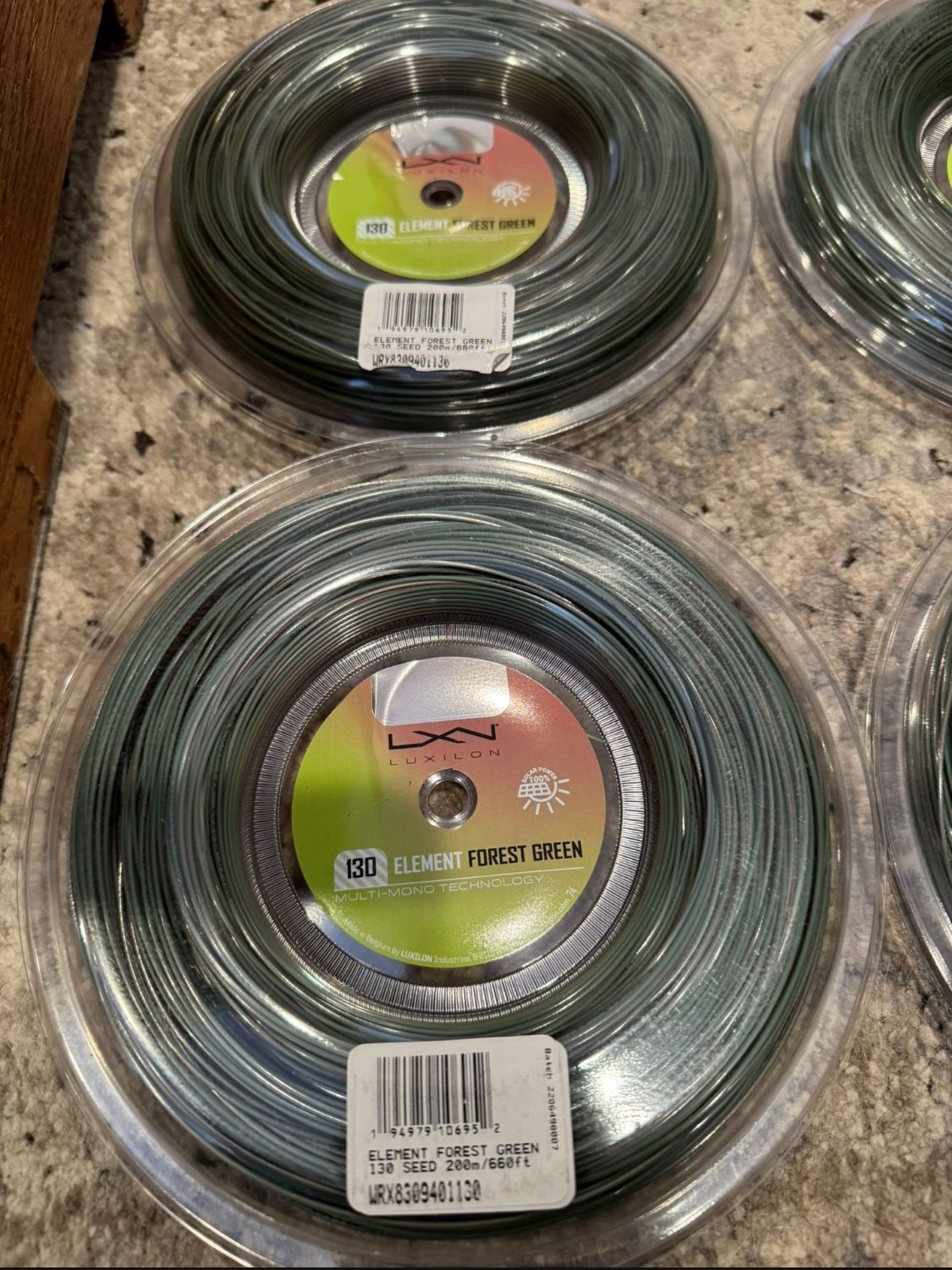 We have multiple reels of Luxilon Element 130, which is 16g. These cost 300 each at Tennis Warehouse. One of the best softest poly on the market! Thank you!