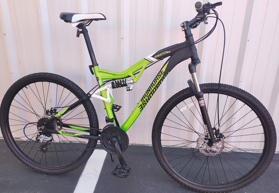Iron horse sinister 6.5 neon full suspension coil 270 Rockshocks 100mm. 24 speed all terrain tires 29 " disc brakes works good new condition